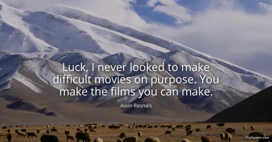 Resnais, Alain. (2026, January 16). Luck, I never looked to make difficult movies on purpose. You make the films you can make. FixQuotes. https://fixquotes.com/quotes/luck-i-never-looked-to-make-difficult-movies-on-138809/