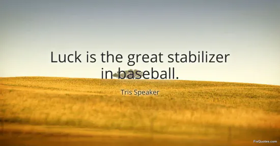 Baseball sells itself as a meritocracy: a clean box score, a tidy geometry of bases, a season long enough to let truth rise to the top. Tris Speaker punctures that comfort with one blunt concession: luck is the great stabilizer. Not the villain, not the excuse - the stabilizer. He’s pointing to the sport’s core paradox: baseball is built to magnify small advantages, yet it’s governed by variables no player can fully command. A 102-mph liner finds a glove; a broken-bat blooper drops between three fielders. Over 162 games, talent matters, but it travels through a pinball machine.