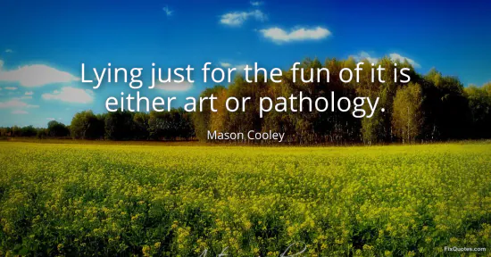 Cooley, Mason. (2026, January 16). Lying just for the fun of it is either art or pathology. FixQuotes. https://fixquotes.com/quotes/lying-just-for-the-fun-of-it-is-either-art-or-99744/