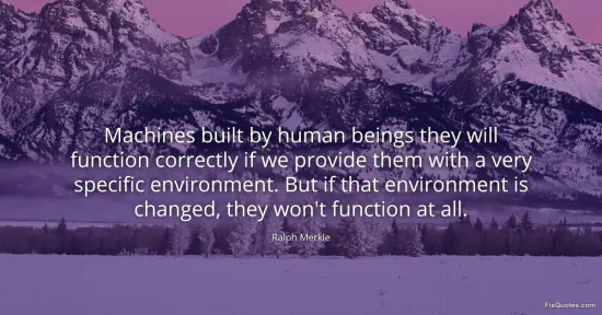 Merkle, Ralph. (2026, January 16). Machines built by human beings they will function correctly if we provide them with a very specific environment. But if that environment is changed, they won't function at all. FixQuotes. https://fixquotes.com/quotes/machines-built-by-human-beings-they-will-function-94194/