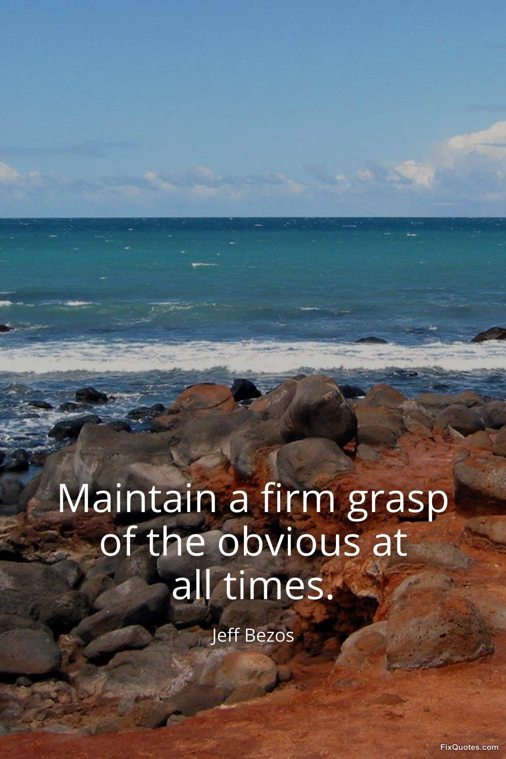 Bezos, Jeff. "Maintain a firm grasp of the obvious at all times." FixQuotes. March 25, 2026. https://fixquotes.com/quotes/maintain-a-firm-grasp-of-the-obvious-at-all-times-186380/.
