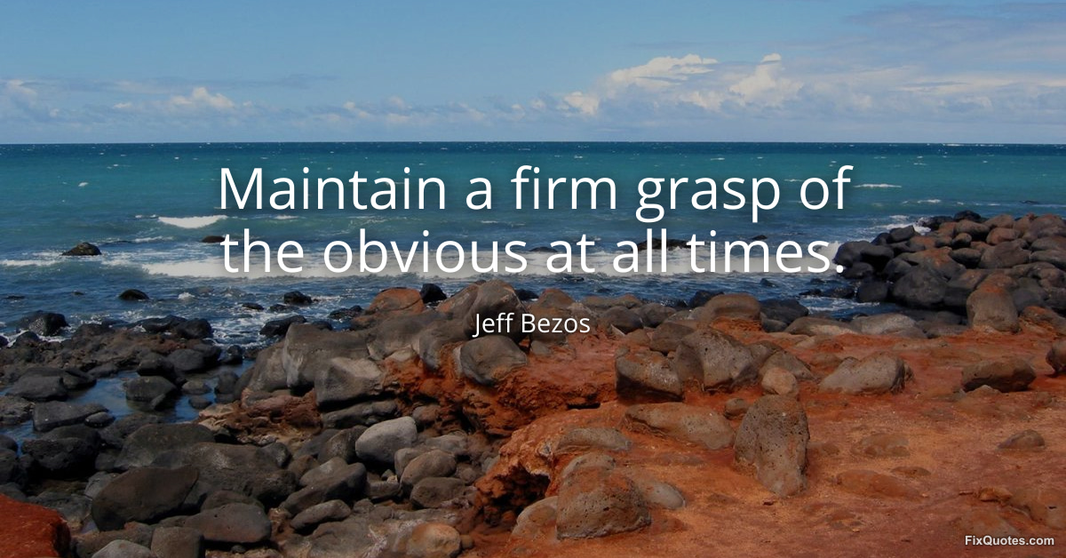 Bezos, Jeff. (2026, March 25). Maintain a firm grasp of the obvious at all times. FixQuotes. https://fixquotes.com/quotes/maintain-a-firm-grasp-of-the-obvious-at-all-times-186380/