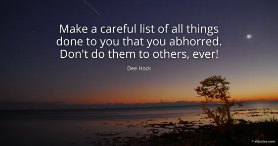 Hock, Dee. (2026, February 18). Make a careful list of all things done to you that you abhorred. Don't do them to others, ever! FixQuotes. https://fixquotes.com/quotes/make-a-careful-list-of-all-things-done-to-you-76600/