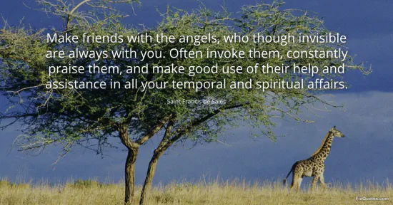Sales, Saint Francis de. (2026, January 17). Make friends with the angels, who though invisible are always with you. Often invoke them, constantly praise them, and make good use of their help and assistance in all your temporal and spiritual affairs. FixQuotes. https://fixquotes.com/quotes/make-friends-with-the-angels-who-though-invisible-71945/