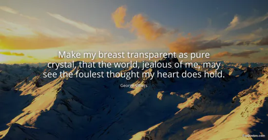 Villiers, George. "Make my breast transparent as pure crystal, that the world, jealous of me, may see the foulest thought my heart does hold." FixQuotes. Accessed February 1, 2026. https://fixquotes.com/quotes/make-my-breast-transparent-as-pure-crystal-that-131945/.
