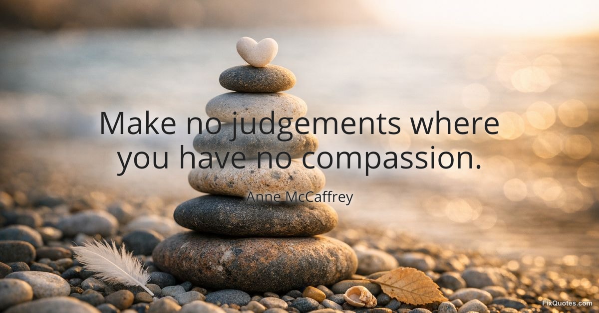 McCaffrey, Anne. "Make no judgements where you have no compassion." FixQuotes. Accessed February 3, 2026. https://fixquotes.com/quotes/make-no-judgements-where-you-have-no-compassion-34451/.