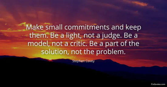 "Make small commitments and keep them. Be a light, not a judge. Be a model, not a critic. Be a part of the solution, not the problem"