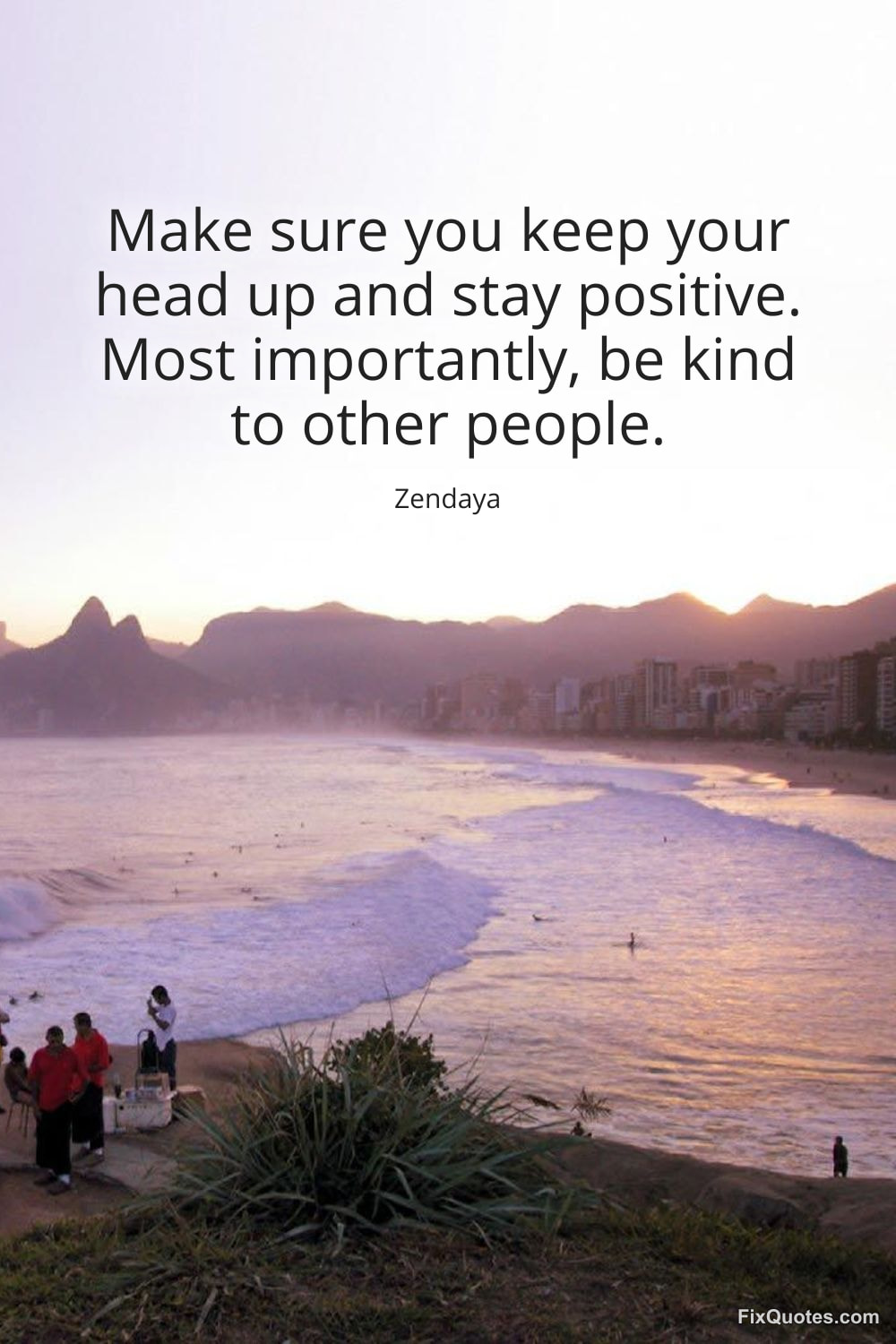 Zendaya. "Make sure you keep your head up and stay positive. Most importantly, be kind to other people." FixQuotes. January 30, 2026. https://fixquotes.com/quotes/make-sure-you-keep-your-head-up-and-stay-positive-184660/.