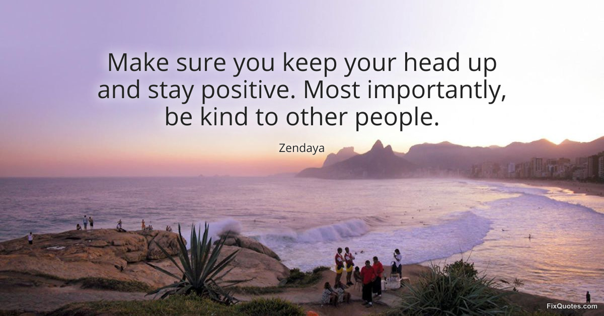 Zendaya. (2026, January 30). Make sure you keep your head up and stay positive. Most importantly, be kind to other people. FixQuotes. https://fixquotes.com/quotes/make-sure-you-keep-your-head-up-and-stay-positive-184660/