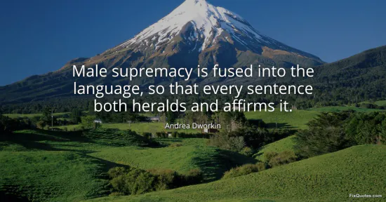 Dworkin, Andrea. (2026, January 15). Male supremacy is fused into the language, so that every sentence both heralds and affirms it. FixQuotes. https://fixquotes.com/quotes/male-supremacy-is-fused-into-the-language-so-that-41056/