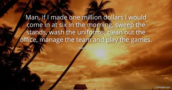 Snider, Duke. "Man, if I made one million dollars I would come in at six in the morning, sweep the stands, wash the uniforms, clean out the office, manage the team and play the games." FixQuotes. January 17, 2026. https://fixquotes.com/quotes/man-if-i-made-one-million-dollars-i-would-come-in-44751/.