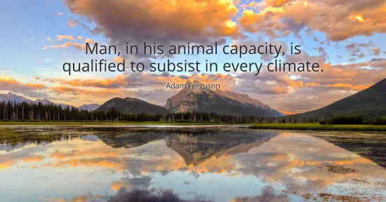 Ferguson, Adam. "Man, in his animal capacity, is qualified to subsist in every climate." FixQuotes. January 16, 2026. https://fixquotes.com/quotes/man-in-his-animal-capacity-is-qualified-to-134951/.