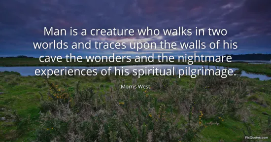 West, Morris. (2026, January 17). Man is a creature who walks in two worlds and traces upon the walls of his cave the wonders and the nightmare experiences of his spiritual pilgrimage. FixQuotes. https://fixquotes.com/quotes/man-is-a-creature-who-walks-in-two-worlds-and-58355/