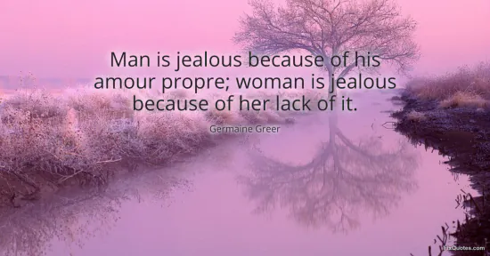 Greer, Germaine. (2026, January 15). Man is jealous because of his amour propre; woman is jealous because of her lack of it. FixQuotes. https://fixquotes.com/quotes/man-is-jealous-because-of-his-amour-propre-woman-59563/
