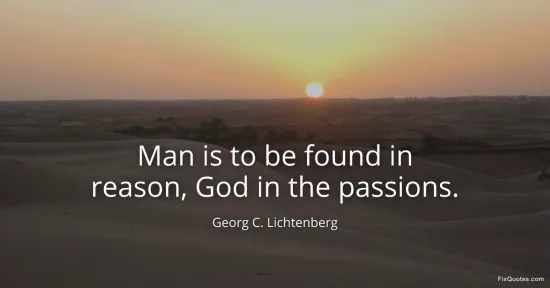 Lichtenberg, Georg C. (2026, January 18). Man is to be found in reason, God in the passions. FixQuotes. https://fixquotes.com/quotes/man-is-to-be-found-in-reason-god-in-the-passions-13318/