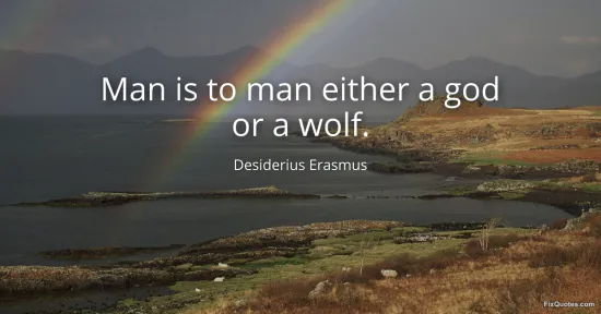 Erasmus, Desiderius. (2026, January 15). Man is to man either a god or a wolf. FixQuotes. https://fixquotes.com/quotes/man-is-to-man-either-a-god-or-a-wolf-43022/