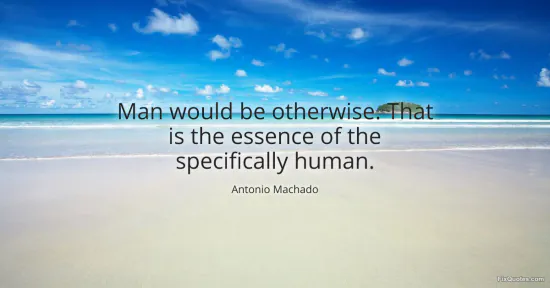 Machado, Antonio. (2026, January 16). Man would be otherwise. That is the essence of the specifically human. FixQuotes. https://fixquotes.com/quotes/man-would-be-otherwise-that-is-the-essence-of-the-110767/