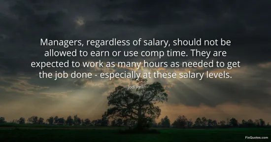 Rell, Jodi. (2026, January 17). Managers, regardless of salary, should not be allowed to earn or use comp time. They are expected to work as many hours as needed to get the job done - especially at these salary levels. FixQuotes. https://fixquotes.com/quotes/managers-regardless-of-salary-should-not-be-76178/
