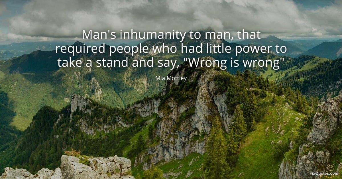 Mottley, Mia. "Man's inhumanity to man, that required people who had little power to take a stand and say, "Wrong is wrong"." FixQuotes. February 20, 2026. https://fixquotes.com/quotes/mans-inhumanity-to-man-that-required-people-who-185645/.