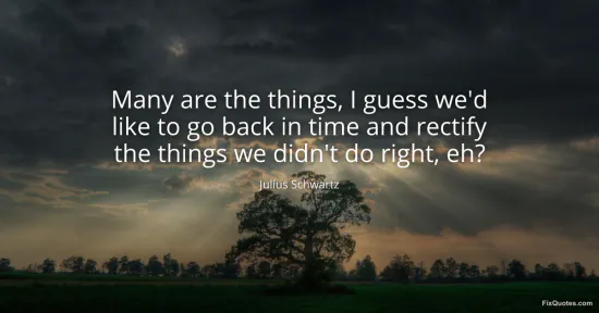 Schwartz, Julius. "Many are the things, I guess we'd like to go back in time and rectify the things we didn't do right, eh?" FixQuotes. February 16, 2026. https://fixquotes.com/quotes/many-are-the-things-i-guess-wed-like-to-go-back-170323/.