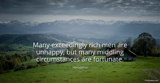 Herodotus. "Many exceedingly rich men are unhappy, but many middling circumstances are fortunate." FixQuotes. January 16, 2026. https://fixquotes.com/quotes/many-exceedingly-rich-men-are-unhappy-but-many-96274/.