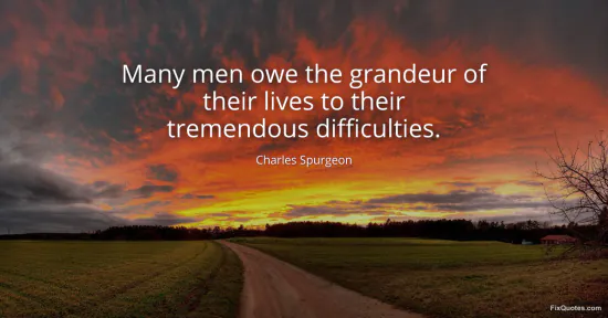Spurgeon, Charles. "Many men owe the grandeur of their lives to their tremendous difficulties." FixQuotes. January 18, 2026. https://fixquotes.com/quotes/many-men-owe-the-grandeur-of-their-lives-to-their-14349/.