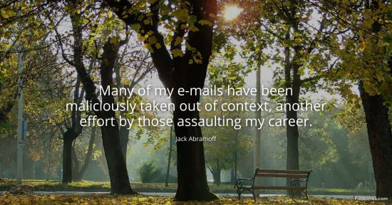 Abramoff, Jack. (2026, January 17). Many of my e-mails have been maliciously taken out of context, another effort by those assaulting my career. FixQuotes. https://fixquotes.com/quotes/many-of-my-e-mails-have-been-maliciously-taken-63827/
