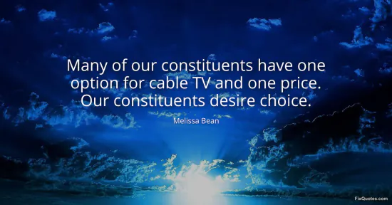 Bean, Melissa. (2026, January 17). Many of our constituents have one option for cable TV and one price. Our constituents desire choice. FixQuotes. https://fixquotes.com/quotes/many-of-our-constituents-have-one-option-for-82008/