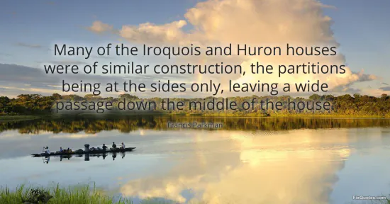 Parkman, Francis. "Many of the Iroquois and Huron houses were of similar construction, the partitions being at the sides only, leaving a wide passage down the middle of the house." FixQuotes. January 17, 2026. https://fixquotes.com/quotes/many-of-the-iroquois-and-huron-houses-were-of-59423/.