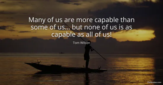 Wilson, Tom. "Many of us are more capable than some of us... but none of us is as capable as all of us!" FixQuotes. January 16, 2026. https://fixquotes.com/quotes/many-of-us-are-more-capable-than-some-of-us-but-102713/.