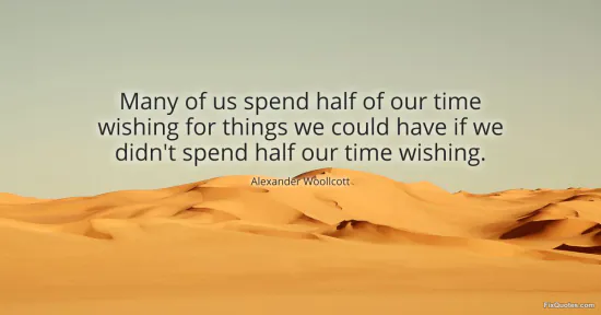 Woollcott, Alexander. (2026, January 17). Many of us spend half of our time wishing for things we could have if we didn't spend half our time wishing. FixQuotes. https://fixquotes.com/quotes/many-of-us-spend-half-of-our-time-wishing-for-43892/