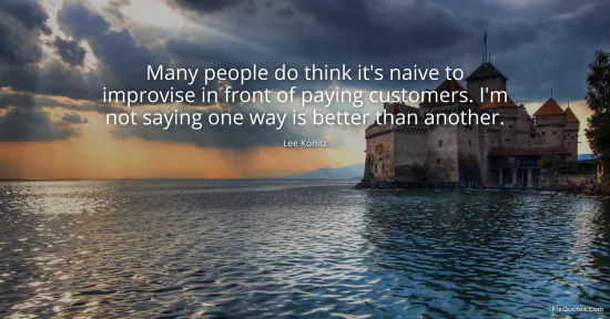 Konitz, Lee. (2026, January 16). Many people do think it's naive to improvise in front of paying customers. I'm not saying one way is better than another. FixQuotes. https://fixquotes.com/quotes/many-people-do-think-its-naive-to-improvise-in-107650/