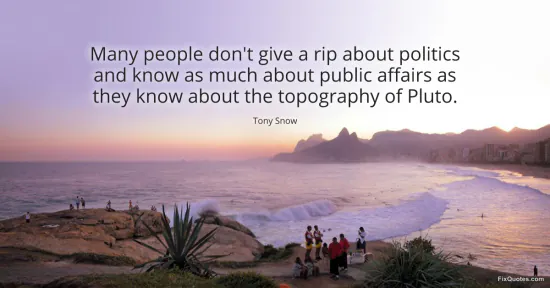 Snow, Tony. (2026, January 16). Many people don't give a rip about politics and know as much about public affairs as they know about the topography of Pluto. FixQuotes. https://fixquotes.com/quotes/many-people-dont-give-a-rip-about-politics-and-129441/