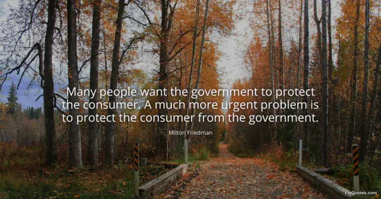 Friedman, Milton. "Many people want the government to protect the consumer. A much more urgent problem is to protect the consumer from the government." FixQuotes. January 15, 2026. https://fixquotes.com/quotes/many-people-want-the-government-to-protect-the-908/.