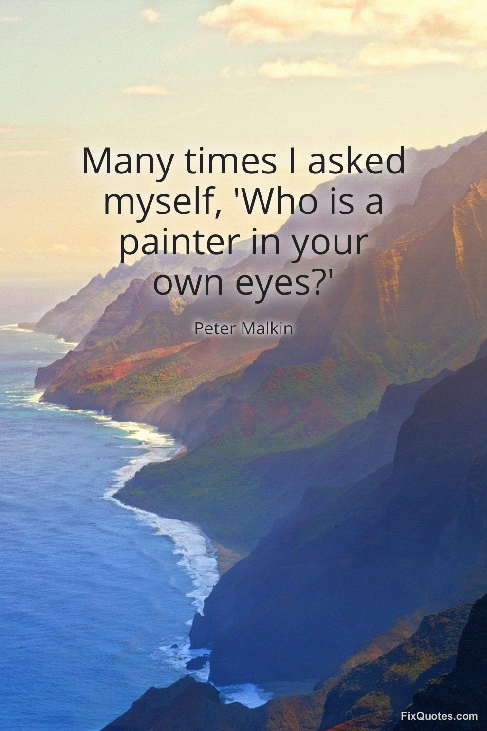 Malkin, Peter. (2026, January 16). Many times I asked myself, 'Who is a painter in your own eyes?'. FixQuotes. https://fixquotes.com/quotes/many-times-i-asked-myself-who-is-a-painter-in-126883/
