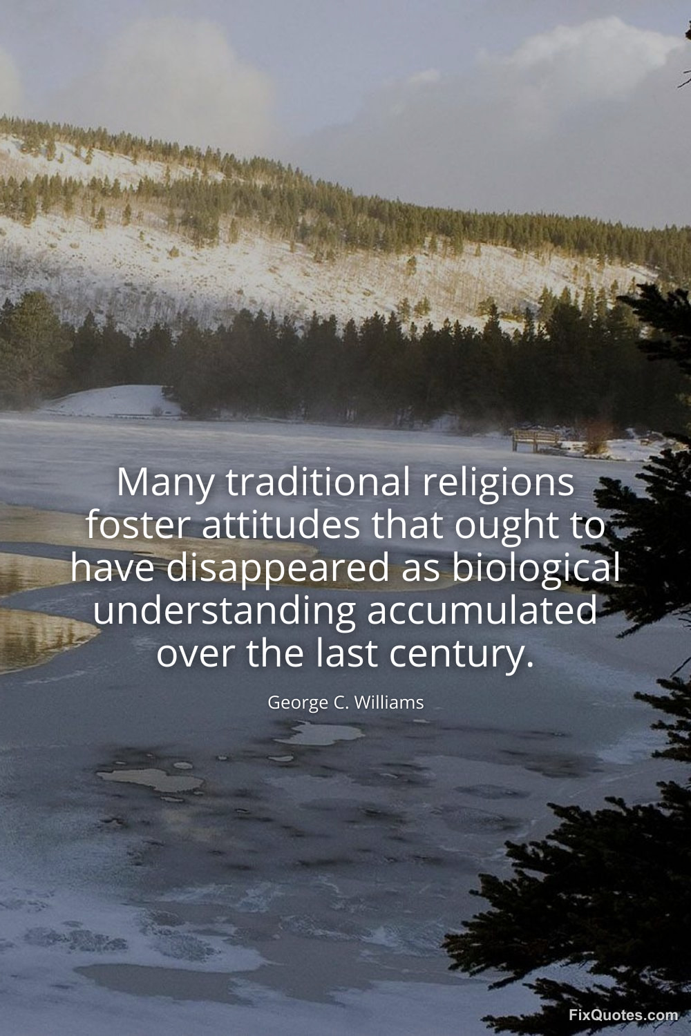 Williams, George C. "Many traditional religions foster attitudes that ought to have disappeared as biological understanding accumulated over the last century." FixQuotes. January 16, 2026. https://fixquotes.com/quotes/many-traditional-religions-foster-attitudes-that-90059/.