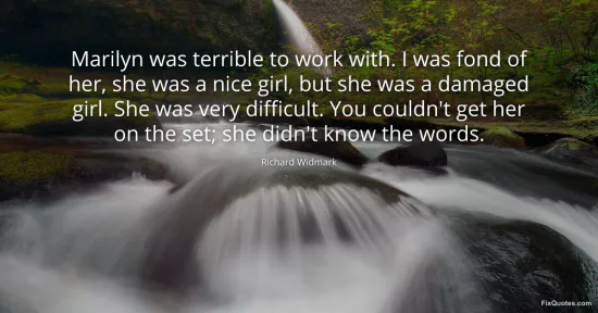 Widmark, Richard. "Marilyn was terrible to work with. I was fond of her, she was a nice girl, but she was a damaged girl. She was very difficult. You couldn't get her on the set; she didn't know the words." FixQuotes. January 16, 2026. https://fixquotes.com/quotes/marilyn-was-terrible-to-work-with-i-was-fond-of-85132/.