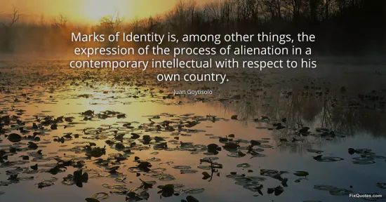 Goytisolo, Juan. "Marks of Identity is, among other things, the expression of the process of alienation in a contemporary intellectual with respect to his own country." FixQuotes. January 17, 2026. https://fixquotes.com/quotes/marks-of-identity-is-among-other-things-the-80481/.