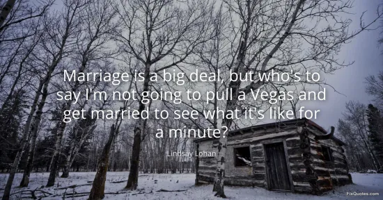 Lohan, Lindsay. "Marriage is a big deal, but who's to say I'm not going to pull a Vegas and get married to see what it's like for a minute?" FixQuotes. January 17, 2026. https://fixquotes.com/quotes/marriage-is-a-big-deal-but-whos-to-say-im-not-81405/.
