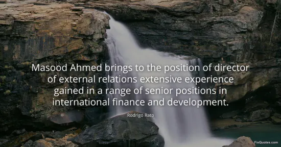 Rato, Rodrigo. (2026, January 16). Masood Ahmed brings to the position of director of external relations extensive experience gained in a range of senior positions in international finance and development. FixQuotes. https://fixquotes.com/quotes/masood-ahmed-brings-to-the-position-of-director-134599/