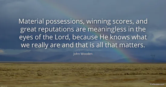Wooden, John. "Material possessions, winning scores, and great reputations are meaningless in the eyes of the Lord, because He knows what we really are and that is all that matters." FixQuotes. January 15, 2026. https://fixquotes.com/quotes/material-possessions-winning-scores-and-great-22083/.
