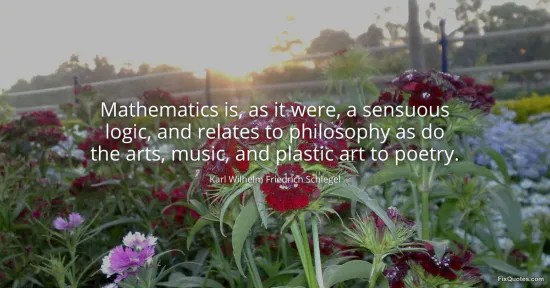 Schlegel slips a small bomb under the modern habit of treating mathematics as cold, sterile, and proudly non-human. Calling it a "sensuous logic" is a Romantic provocation: math is rigorous, yes, but it is also felt. It has texture, cadence, surprise. In Schlegel's framing, a proof doesn’t merely compel assent; it seduces the mind with inevitability. The phrase "as it were" matters, too. He’s not trying to rebrand mathematics as art outright; he’s insisting that our experience of it already behaves like aesthetic experience, even when we pretend it doesn’t.