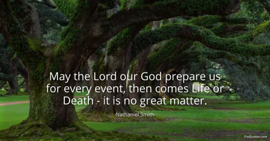 Smith, Nathaniel. (2026, January 16). May the Lord our God prepare us for every event, then comes Life or Death - it is no great matter. FixQuotes. https://fixquotes.com/quotes/may-the-lord-our-god-prepare-us-for-every-event-136786/