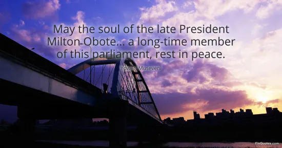 "May the soul of the late President Milton Obote... a long-time member of this parliament, rest in peace." FixQuotes, 15 Jan. 2026, https://fixquotes.com/quotes/may-the-soul-of-the-late-president-milton-obote-a-170986/. Accessed 10 Feb. 2026.