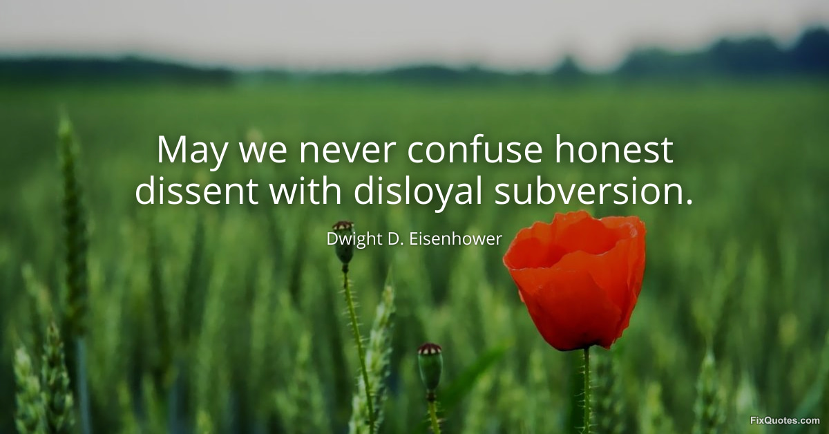 Eisenhower, Dwight D. (2026, February 28). May we never confuse honest dissent with disloyal subversion. FixQuotes. https://fixquotes.com/quotes/may-we-never-confuse-honest-dissent-with-disloyal-16935/