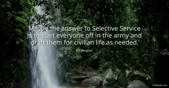 Vaughan, Bill. (2026, January 17). Maybe the answer to Selective Service is to start everyone off in the army and draft them for civilian life as needed. FixQuotes. https://fixquotes.com/quotes/maybe-the-answer-to-selective-service-is-to-start-39164/