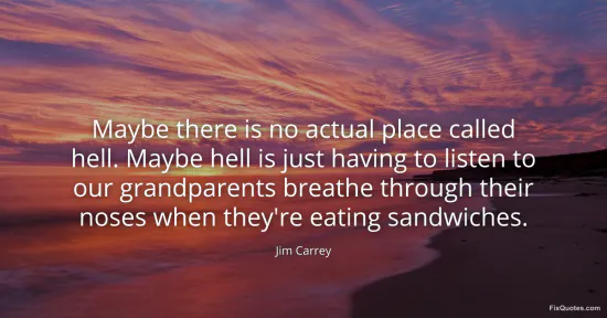 Carrey, Jim. (2026, January 18). Maybe there is no actual place called hell. Maybe hell is just having to listen to our grandparents breathe through their noses when they're eating sandwiches. FixQuotes. https://fixquotes.com/quotes/maybe-there-is-no-actual-place-called-hell-maybe-7768/