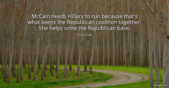 Todd, Chuck. (2026, January 15). McCain needs Hillary to run because that's what keeps the Republican coalition together. She helps unite the Republican base. FixQuotes. https://fixquotes.com/quotes/mccain-needs-hillary-to-run-because-thats-what-148692/