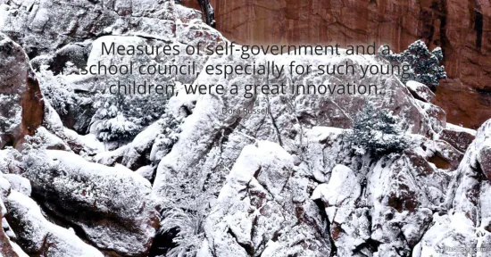 "Measures of self-government and a school council, especially for such young children, were a great innovation." FixQuotes, 17 Jan. 2026, https://fixquotes.com/quotes/measures-of-self-government-and-a-school-council-51137/. Accessed 11 Feb. 2026.