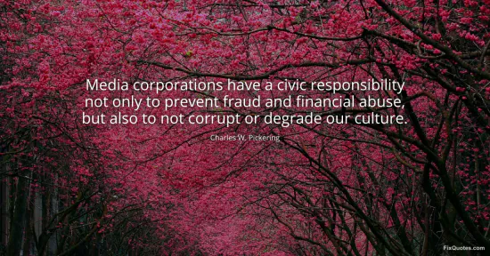 Pickering, Charles W. "Media corporations have a civic responsibility not only to prevent fraud and financial abuse, but also to not corrupt or degrade our culture." FixQuotes. January 15, 2026. https://fixquotes.com/quotes/media-corporations-have-a-civic-responsibility-43798/.
